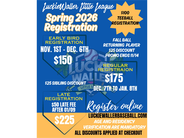 Our registrations for the 2026 Spring season will start on 11/1. Register early and save. Early Bird prices are as follows: